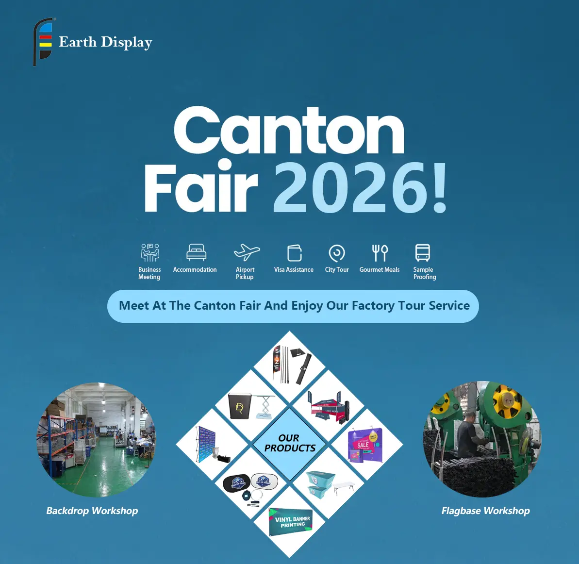 Kantonský veletrh 2026 se blíží a my v Earth Display opravdu doufáme, že vás tam uvidíme. Již více než deset let vyrábíme péřové vlajky, vyskakovací kulisy, podstavce na vlajky, vlastní vinylové bannery – v podstatě cokoliv pro výstavy a reklamy. Tentokrát vám místo mluvení online chceme ukázat, co děláme, tváří v tvář.